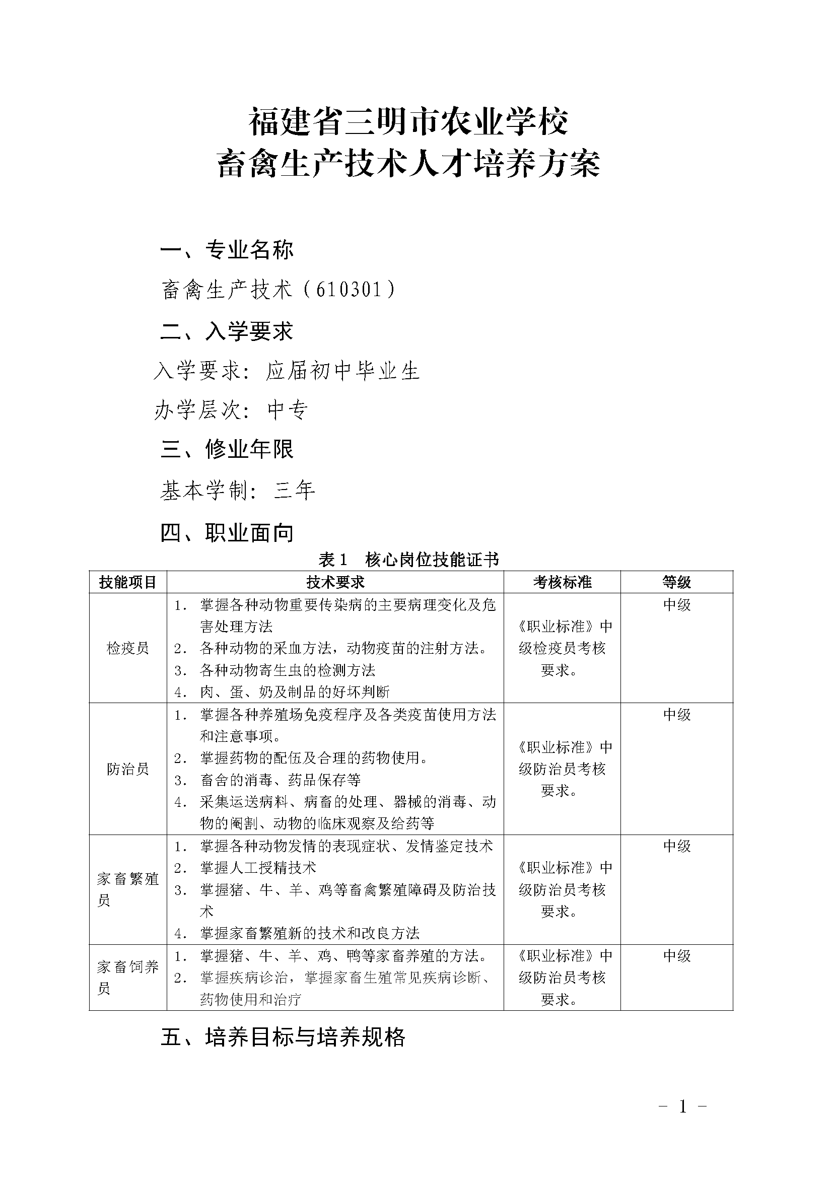 三明市农业学校畜禽生产技术专业人才培养方案(2023)